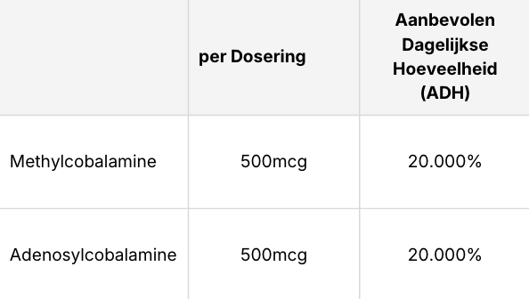 Methylcobalamine en adenosylcobalamine zijn de actieve vormen van B12 die het lichaam direct kan gebruiken.